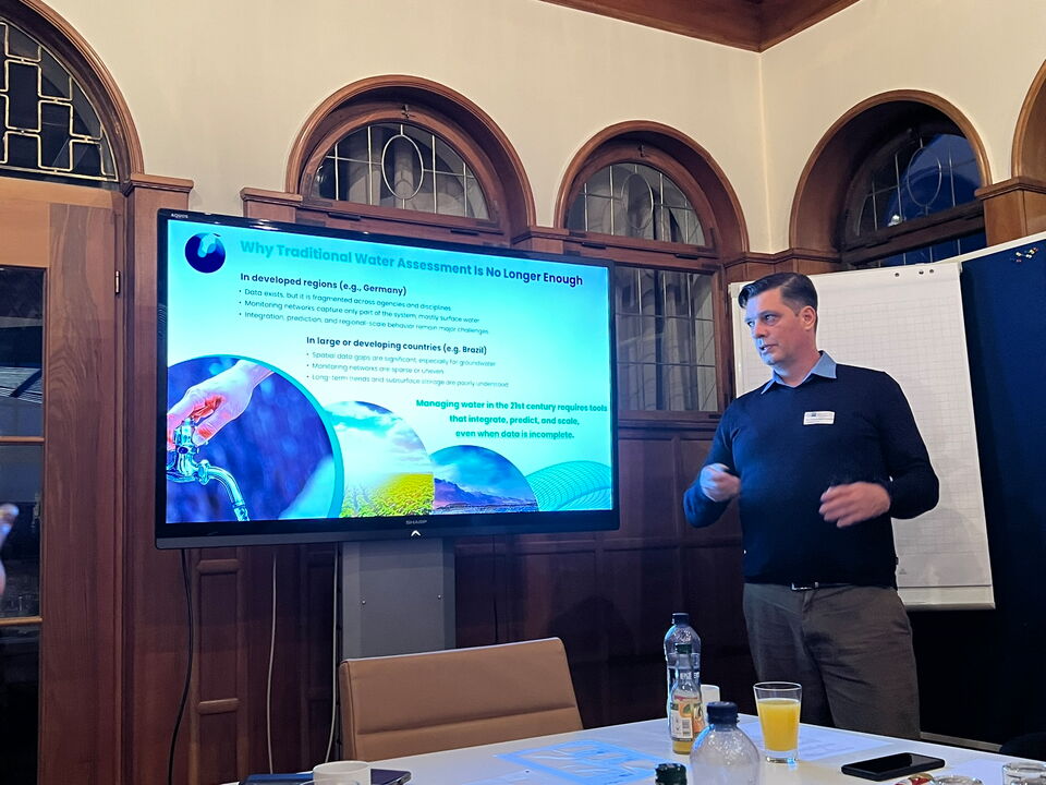 Fernando Mazo D'Affonseca illustrated how satellite data can reveal groundwater fluctuations, but also highlighted that satellite data alone is not enough for reliable forecasting. By combining it with detailed knowledge of soil structure and topography, HydroGeoTwin creates digital twins which can model and predict suitable water management strategies.